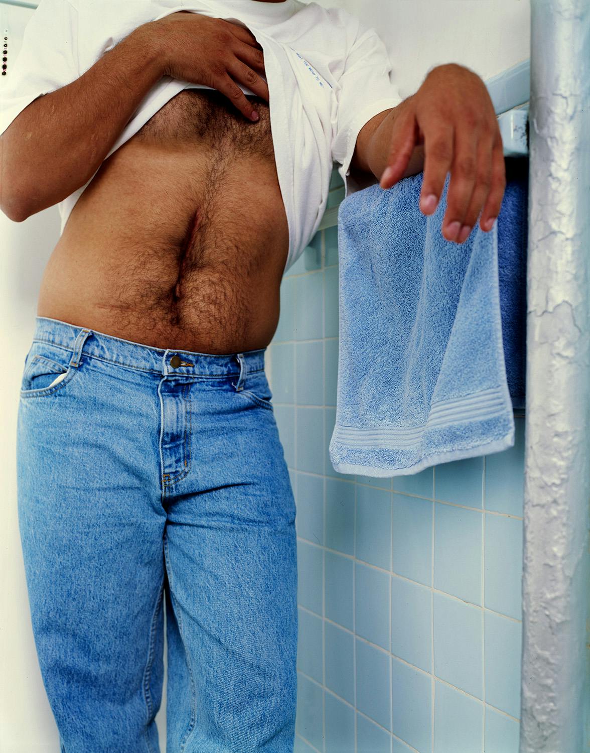 Claro often describes the outer boroughs as a kind of “middle world,” a space that feels neither fully central nor peripheral, both familiar and strangely indeterminate. Within this environment, everyday locations—parks, residential streets, bridges, and vacant lots—become stages on which subtle narratives unfold. Many of the photographs emerge through reenactment or the construction of carefully arranged situations, allowing the artist to transform ordinary places into charged psychological spaces.